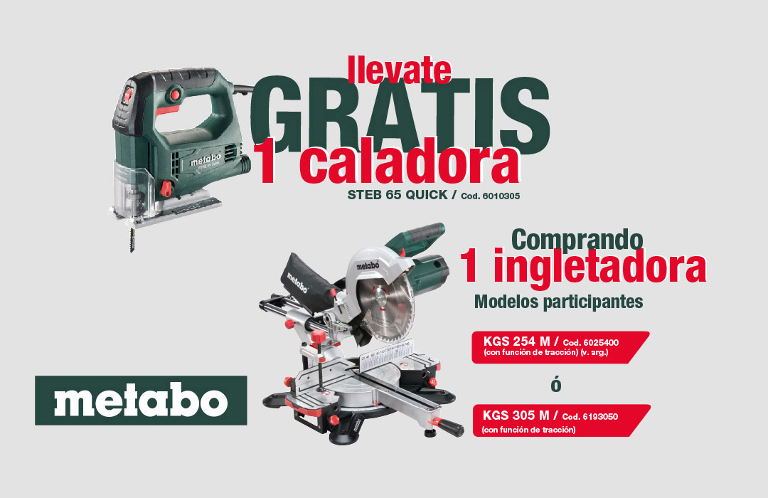 Comprando una Ingletadora Metabo (KGS 254M ó KGS 305) te llevás una Caladora Steb 65 Quick Metabo de Regalo!!