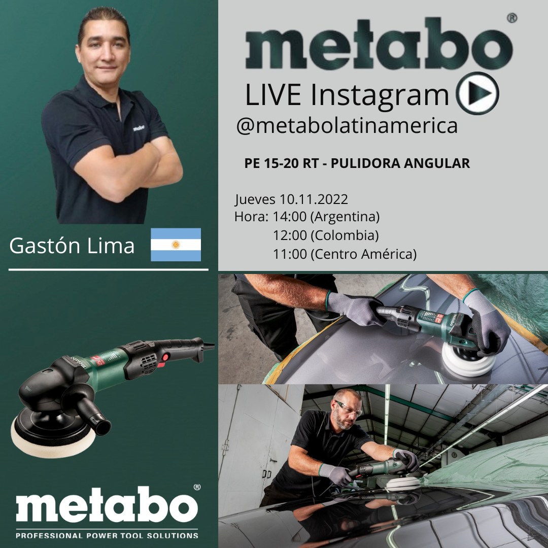 *HOY* Jueves 10/11/2022 14Hs.: No te pierdas el nuevo LIVE en Instagram, sobre la Pulidora Angular Metabo PE 15-20RT presentado por Gastón Lima (Technical Demonstrator) desde Metabo en Buenos Aires, Argentina.